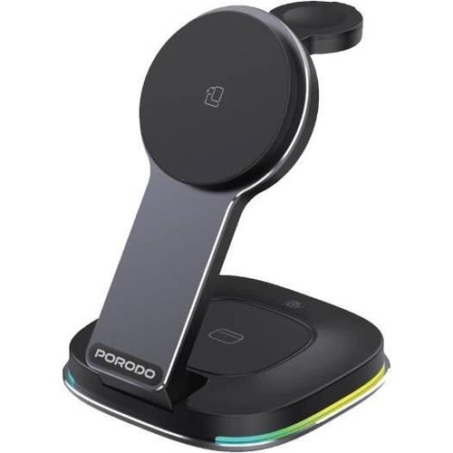 Porodo 15W 3-in-1 MagSafe Folding Fast Charger with RGB Lights Type-C – Black
