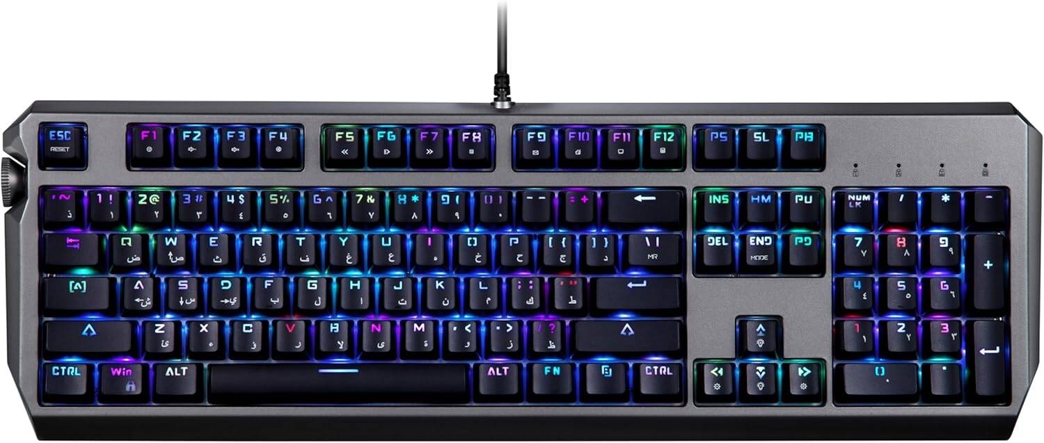 Introducing the Porodo remarkable mechanical gaming keyboard, renowned for its exceptional quality and an array of features that truly make it stand out among its peers. One of its remarkable attributes is the inclusion of anti-ghosting keys, ensuring that each keystroke is accurately registered, even when multiple keys are pressed simultaneously. Moreover, the keyboard boasts the utilization of Gateron Pro switches, renowned for their buttery-smooth and tactile feel which enhances the overall typing and gaming experience. With a total of 104 keys, the keyboard encompasses both the US and Arabic layouts, catering to the needs of gamers and typists worldwide.Adding to its allure, the keyboard features captivating RGB lighting with multiple modes which allows you to personalize and customize the keyboard’s appearance to suit your unique preferences. Thanks to its volume knob function users can adjust the volume of their PC, especially when they are gaming or in a chat. when it comes to connectivity and usage, the keyboard effortlessly connects to your PC via USB then confidently with a 50 million clicks lifespan you can use it for years.
