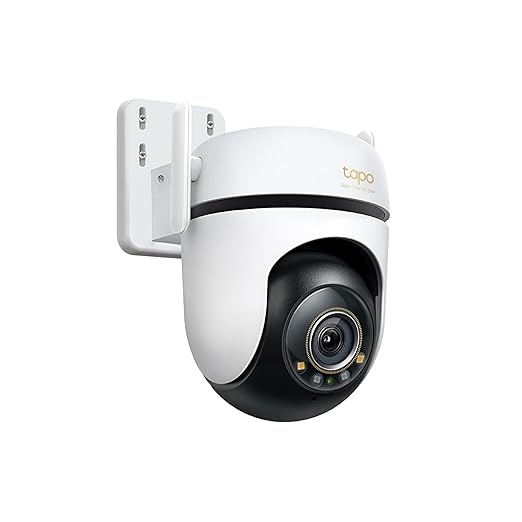 Outdoor Pan/Tilt Security Wi-Fi Camera : SPEC — 3K 5MP (2880×1620), 2.4 GHz, 2 × External Antennas, 1 × Ethernet Port, Horizontal 360º. FEATURE — Pan/Tilt, Starlight Color Night Vision, Smart AI Detection and Notifications (motion, people, pets, cars), Sound and Light Alarm, Remote Control, Two-Way Audio, Voice Control (Works with Google Assistant ), Local Storage through microSD Card (Up to 512 GB), Tapo App, Weatherproof (IP66), Night Vision (Up to 30 m), Frustration-Free Setup (FFS)